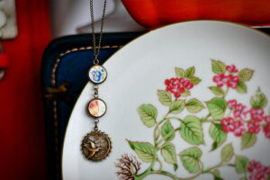 Is Holli Brown’s original jewelry line using only collected vintage dishes and plates.